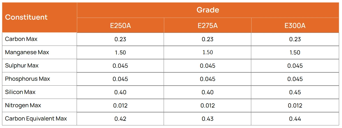 Home pRODUCTS Mild Steel Rounds Mild Steel Rounds Mild Steel Rounds Mild Steel Rounds are versatile steel products widely used across industries for their ease of use and adaptability. Mild Steel Round Bars have a combination of strength and flexibility makes them suitable for applications ranging from construction reinforcements to machinery components. Suryadev’s MS Rounds are manufactured with precision to deliver superior quality, making them suitable for a wide range of industrial and structural applications. Adhering to stringent BIS standards, Suryadev's Mild Steel Rods Rounds have exceptional surface finish, uniform composition, and high durability. With reliable performance and excellent machinability, they remain the preferred choice for engineers and fabricators seeking precision and consistency in their projects. Mild Steel Rounds (IS2062) for Structural Steel Constituent Grade E250A E275A E300A Carbon Max 0.23 0.23 0.23 Manganese Max 1.50 1.50 1.50 Sulphur Max 0.045 0.045 0.045 Phosphorus Max 0.045 0.045 0.045 Silicon Max 0.40 0.40 0.45 Nitrogen Max 0.012 0.012 0.012 Carbon Equivalent Max 0.42 0.43 0.44
